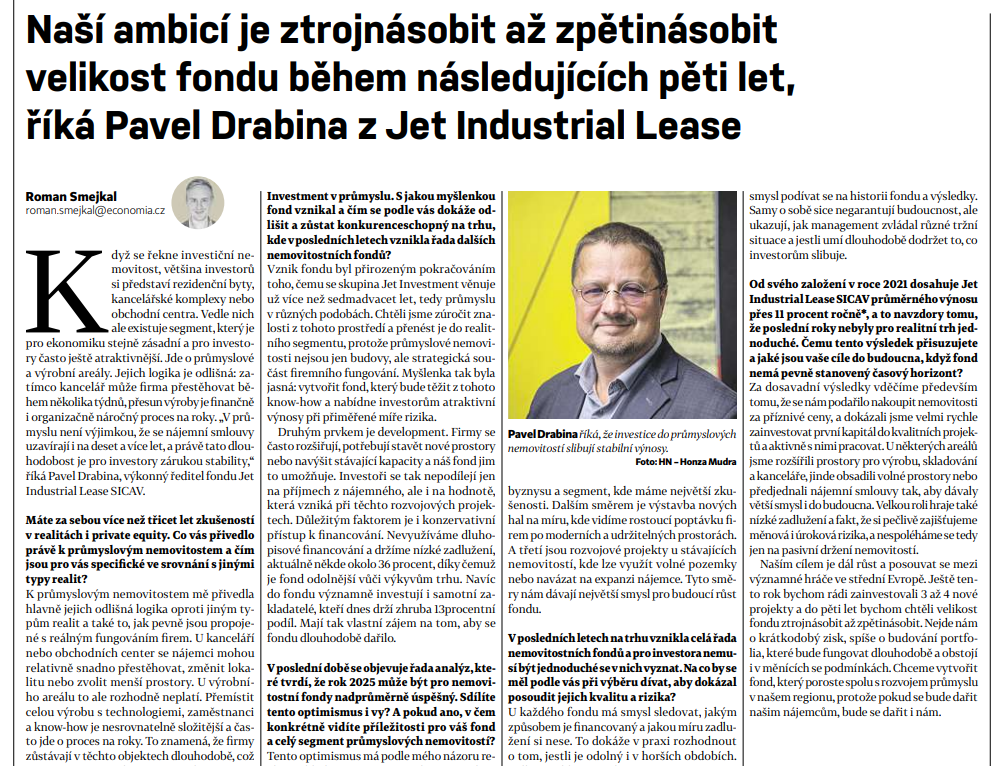 Patria.cz: Nakolik se liší oblasti, do kterých chcete investovat fondem Jet 2 oproti fondu Jet 1?